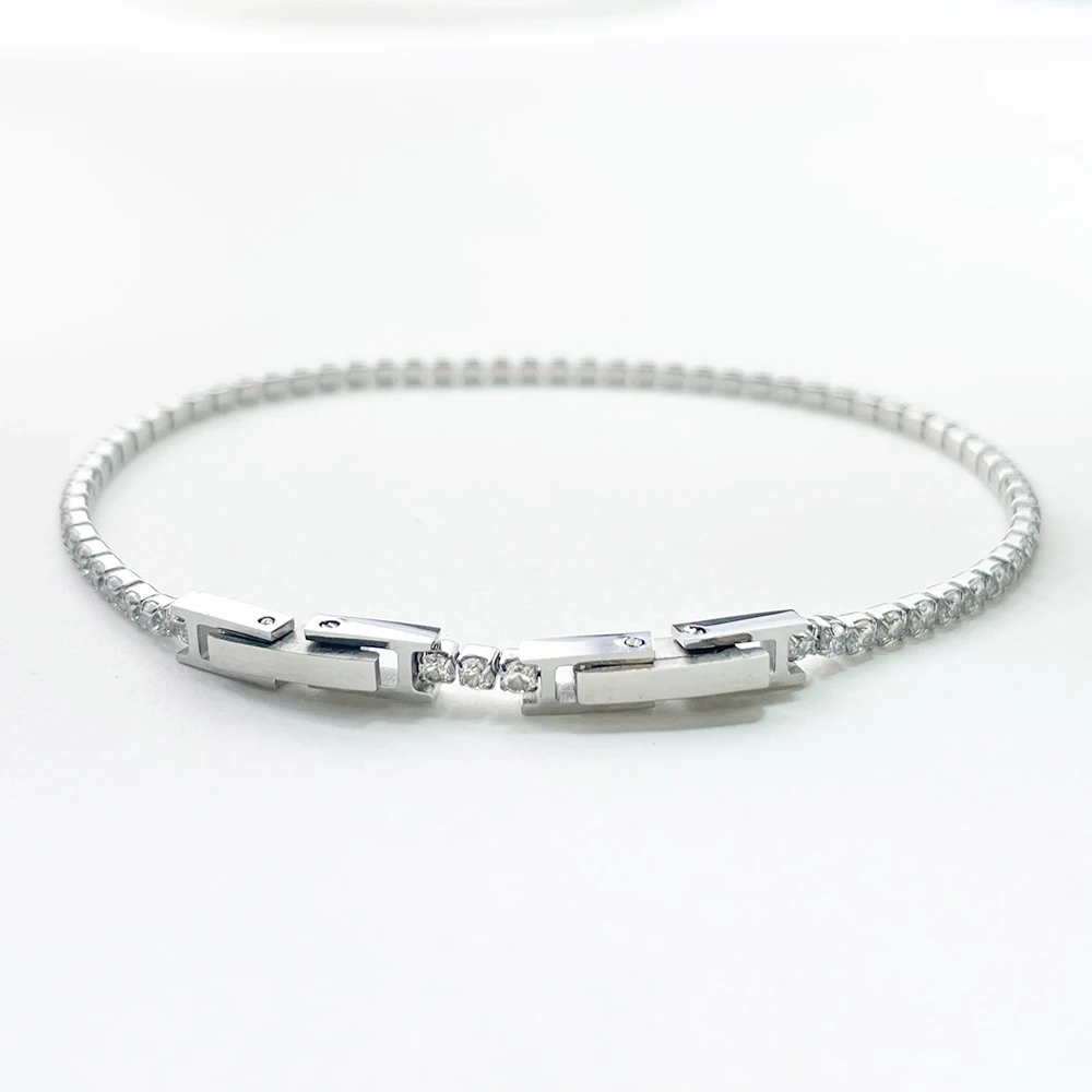 Aurelia Tennis Bracelet — 2mm CZ Cluster Link Chain in Stainless Steel